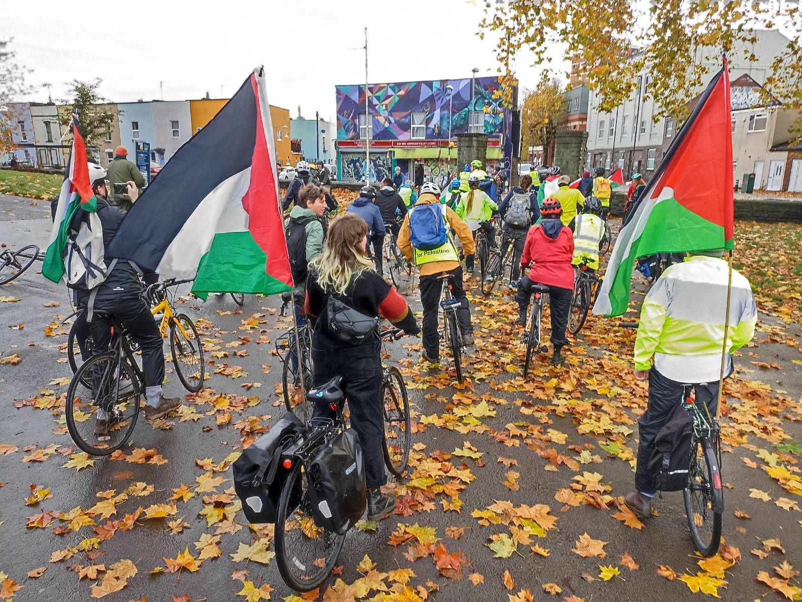 The Big Ride for Palestine bloc has joined marches in London for Palestine and for a ceasefire as well as supporting local protests throughout the country and organising rides for Gaza and Palestine