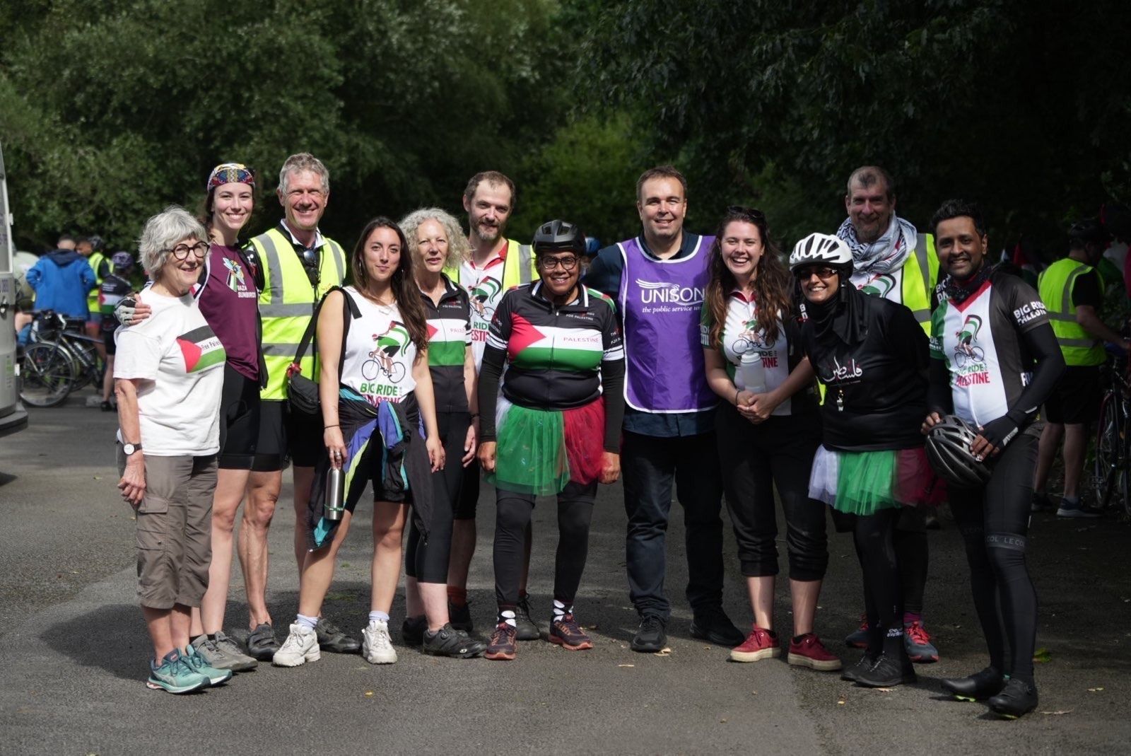 Seventy five years ago marks the start of the ongoing Israeli colonisation and ethnic cleansing of Palestine. The year 2023 is significant not only as an anniversary of a historical atrocity, but as a painful milestone of the ongoing injustices and crimes against humanity in Palestine today. As the Big Ride turns its wheels towards Wales for the coming year, we pay homage to and amplify the voices of those struggling under 75 years of siege and colonisation. The struggle for justice and liberation in Palestine is entering a new chapter under an increasingly ultra-far-right Israeli regime. Here in the UK there is a surge in trade union consciousness and in support for working people's fight over pay and conditions. We Big Riders are steadfast in our commitment to solidarity with the liberation of Palestine as an intrinsic part of working people's struggles everywhere.